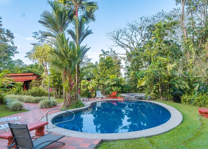 这栋别墅距离卡兰布温泉有3.4公里,福图纳瀑布距离别墅有2.4公里. La Fortuna市中心距离别墅有25分钟的步行路程,入住的旅客在该地区游览会很方便. 到提供中美的Restaurante Rana Roja走路只需13分钟. 别墅毗邻Termales Los Laureles(洛斯劳雷莱斯温泉).